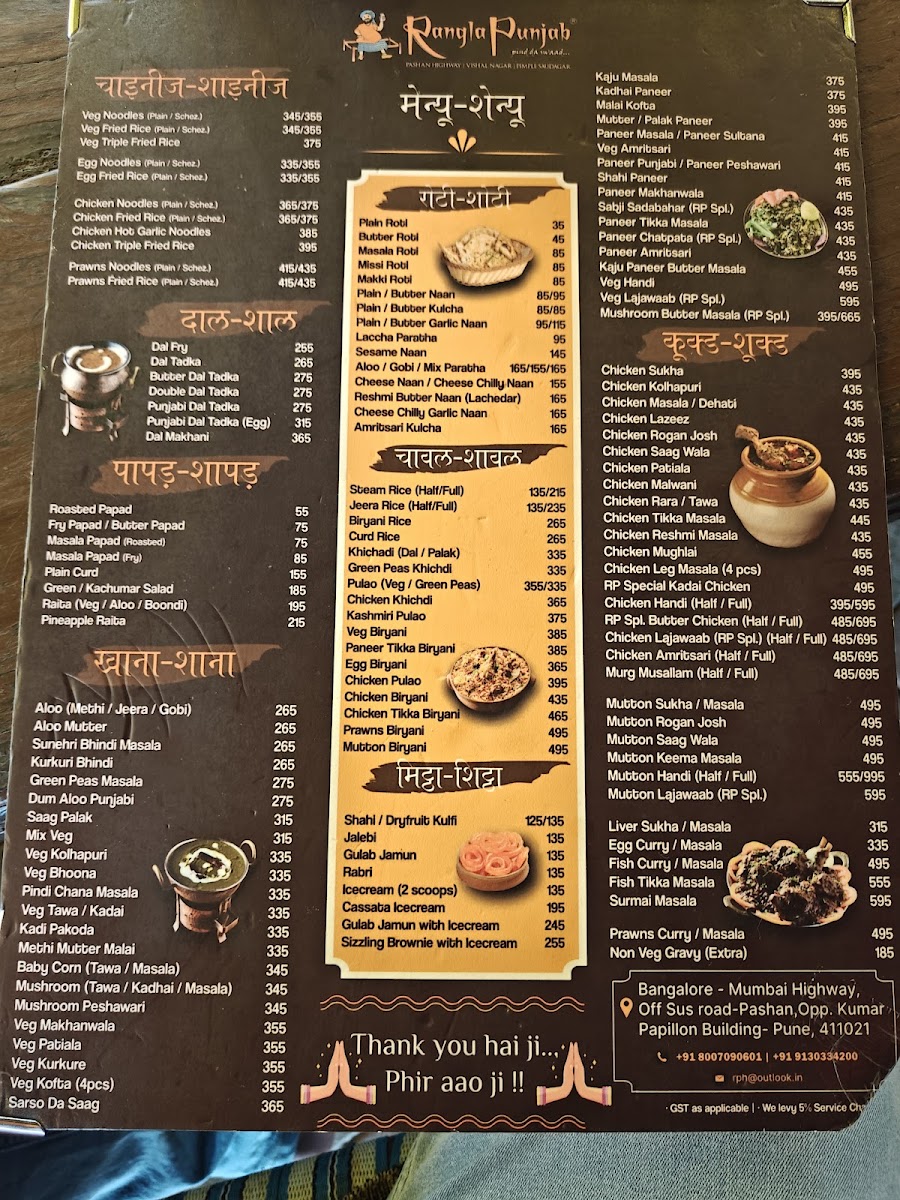 “ If you're craving authentic Punjabi food, Rangala Punjab Dhaba near Pashan is a must-visit! The moment you enter, the open-to-sky seating and rustic Punjabi décor set the mood just right – it truly feels like you're dining in a traditional North Indian village setting. The food is absolutely delicious! Their soft, melt-in-the-mouth kebabs are perfectly spiced and cooked to perfection. The main course has all the Punjabi favourites with rich flavours and generous portions. Don’t miss their lassi – thick, creamy, and served in tall steel glasses, just like in Punjab. Both Veg and non-veg food was excellent. And to end the meal on a sweet note, their jalebi-rabdi combination is simply heavenly – crispy jalebis soaked in warm, thick rabdi. It’s the perfect dessert to round off a hearty meal. Great food, wonderful ambience, and quick service – Rangala Punjab gives a true dhaba experience in the heart of the city. Highly recommended for families, foodies, and anyone looking for a satisfying Punjabi feast! ”